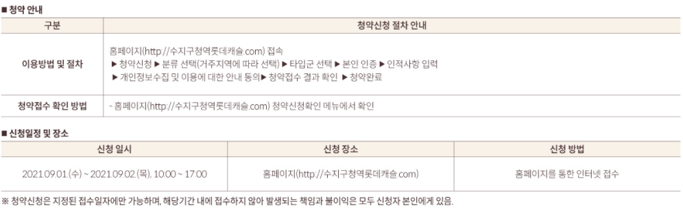 청약 방법 : 수지구청역롯데캐슬.com 접속 후 신청