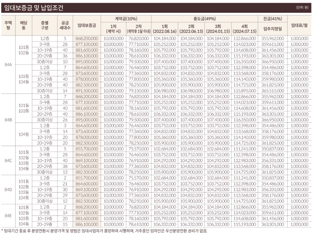 타입별세대수 : 84A 248세대 / 84B 198세대 / 84C 124세대 / 84D 94세대 / 84E 51세대