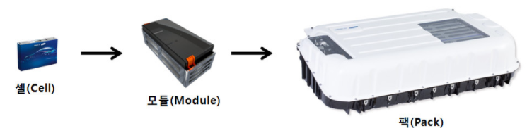 셀은 배터리의 기본단위로 양극과 음극, 분리막, 전해액을 알루미늄 케이스에 넣어 만듭니다. 이 셀을 외부 충격과 영, 진동으로 부터 보호하기 위해 일정한 개수만큼 묶어 틀에 넣은 조립체가 모듈입니다.