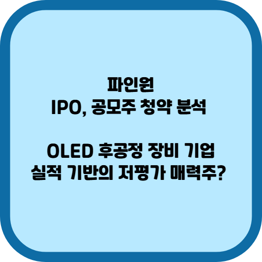 기술특례, 적자기업 중심이던 최근 공모주 시장에서 파인원은 실적 기반의 탄탄한 중소기업 IPO라는 점에서 눈에 띕니다. OLED 후공정 장비 시장이 회복세에 있는 지금, 파인원은 저평가된 실적주로서 상장 후 안정성과 상승 가능성을 모두 품고 있습니다.