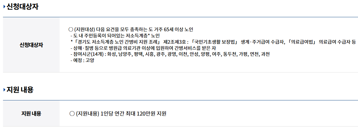 혹시 경기도에 거주하는 부모님이나 조부모님이 계신가요? 의료급여 또는 기초수급자이신가요? 병원에 입원해 외부 간병인을 쓰신 적이 있다면, 꼭 이 제도를 확인하고 신청해보시길 권합니다.