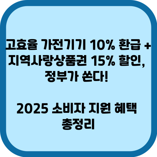 고효율 가전기기 10% 환급 + 지역사랑상품권 15% 이 두 가지 제도를 중심으로, 소비자가 꼭 알아야 할 실질적인 혜택과 활용 방법을 정리해보았습니다.