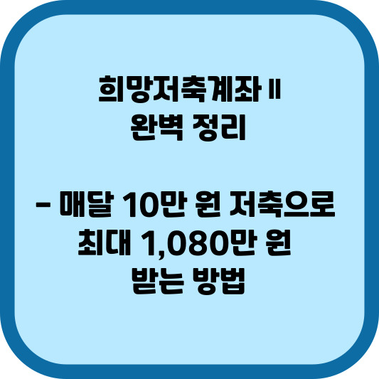 희망저축계좌Ⅱ는 단순한 금융지원이 아니라, 경제적 자립을 위한 든든한 자산형성 도우미입니다. 근로 활동을 하고 있지만 수입이 적어 미래가 막막한 분들에게 꼭 필요한 제도입니다.
