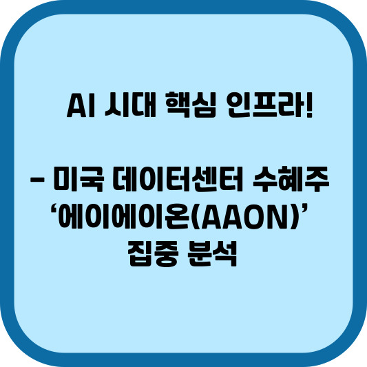 AI 시대 핵심 인프라! 미국 데이터센터 수혜주 ‘에이에이온(AAON)’ 집중 분석하여 에이에이온(AAON)의 핵심 사업 모델, 데이터센터 , 업과의 연결성, 최근 주가 흐름 및 투자 포인트 등의 성장 가능성을 구체적으로 확인해 보겠습니다.