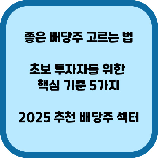 초보 투자자를 위한 좋은 배당주 고르는 법과 핵심 기준 5가지와 함께 2025 추천 배당주 섹터까지 정리해보겠습니다.