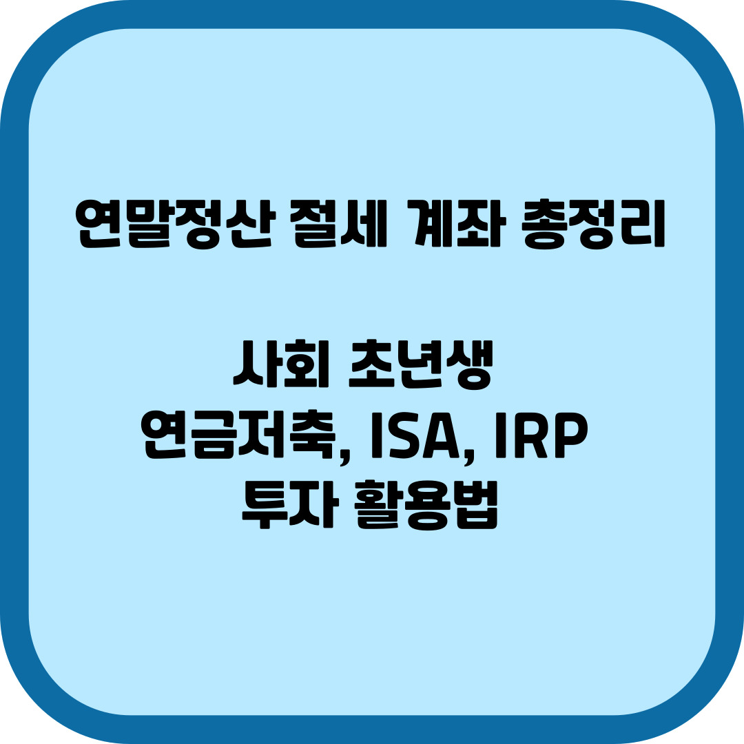 연말정산을 기준으로 사회초년생이 반드시 알아야 할 절세 계좌의 역할과 차이, 그리고 ISA부터 연금저축, IRP까지 어떤 순서로 활용하는 것이 합리적인지 실제 투자 관점에서 살펴보겠습니다.