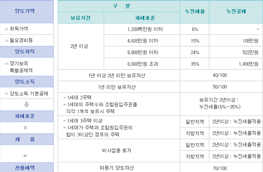 3. 양도소득에 양도소득 기본공제를 적용하고 세율을 곱하면 산출세액이 됩니다.